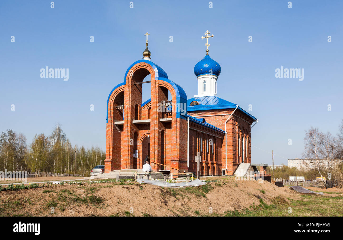 New Local Russian Orthodox Church With Blue Roof And Dome Under Construction In The Suburbs Of Perm Russia Stock Photo Alamy